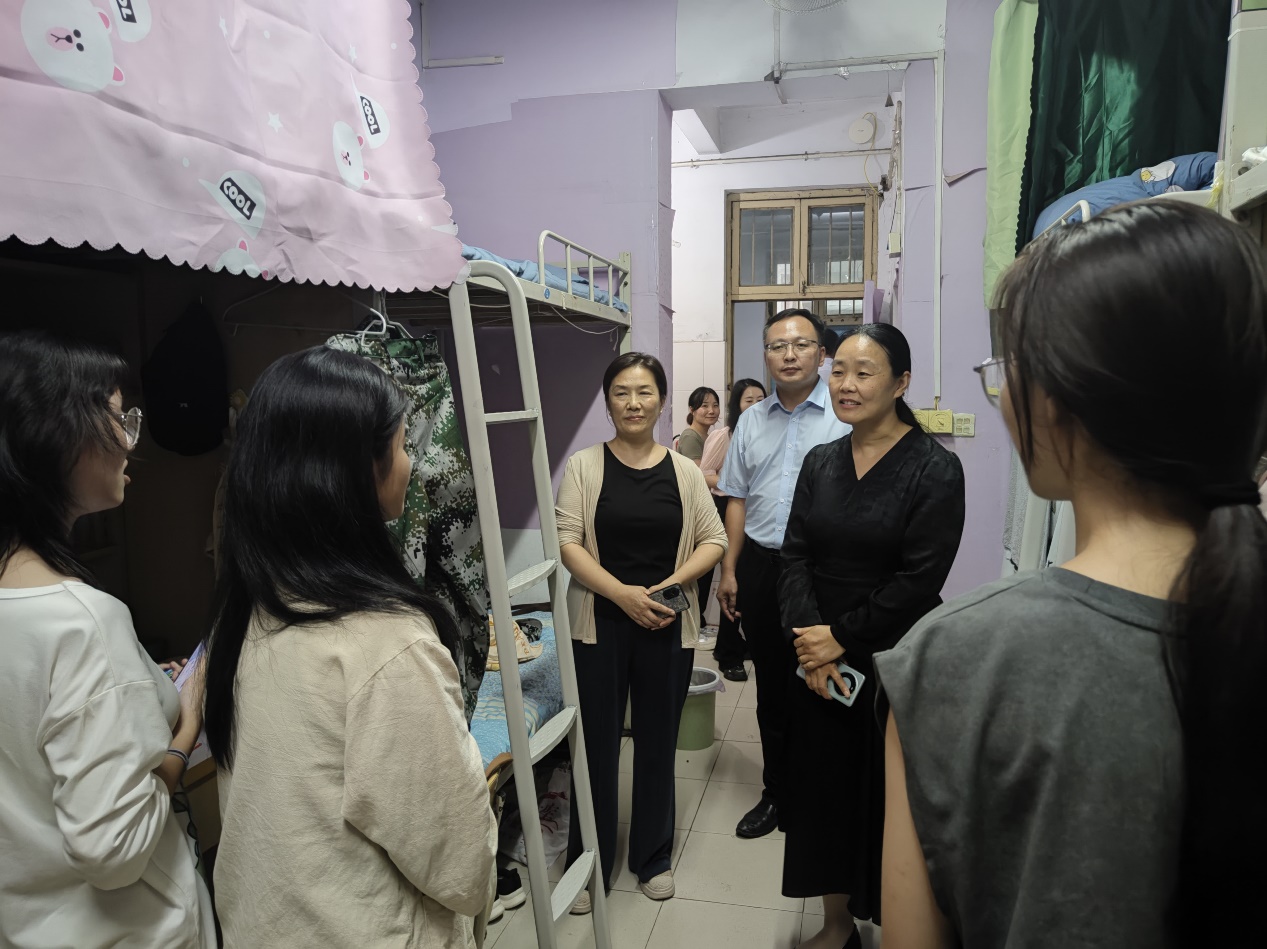 在走访过程中,校领导一行对新生的到来表示热烈欢迎,并同新生亲切交流。校领导们从住宿饮食、生活习惯、发展规划等多方面深入了解新生情况,并叮嘱学生做好新学期学业规划,提高自律意识,共同营造良好的学习和生活卫生环境。