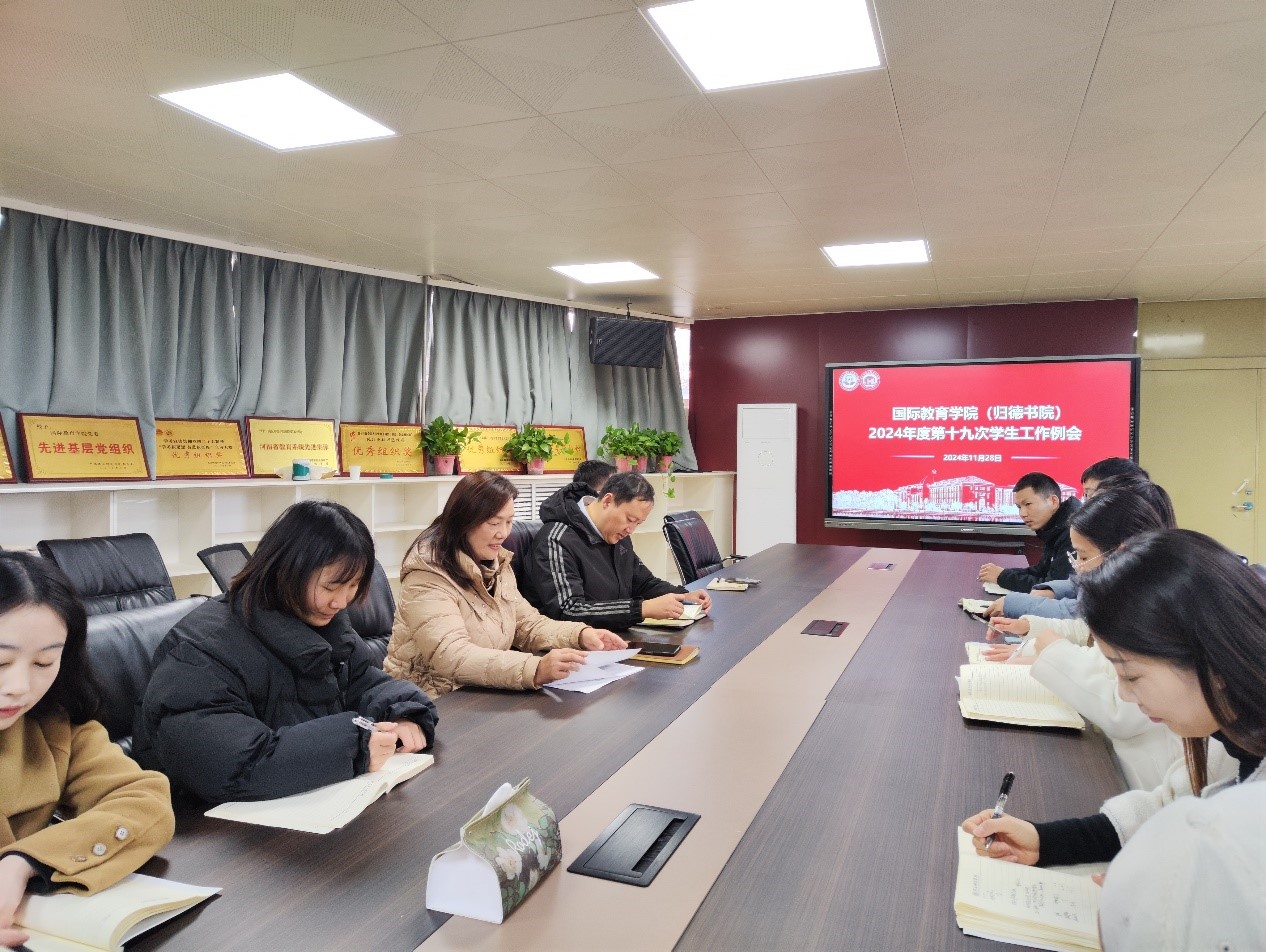 为切实做好学生思想政治教育和管理工作,进一步落实立德树人根本任务,确保学生工作有序高效推进,11月28日,我院在归德书院二楼会议室召开2024年度第十九次学生工作例会。党委副书记曹庆艳、全体育人导师参加会议。党委副书记陈东鹏主持。