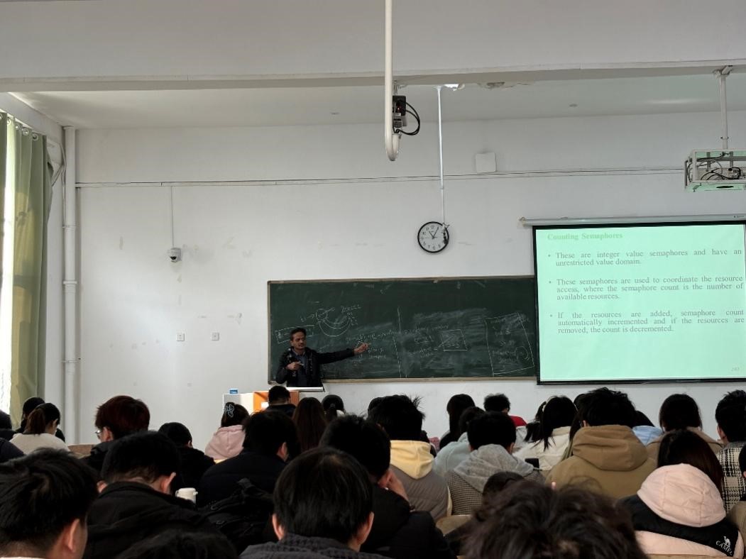 根据中外合作办学要求,William威廉英国于2024年10月为2022级软件工程专业学生引进课程《Linux操作系统》,此次授课的是计算机科学专业Ramalingam Muthusamy博士。