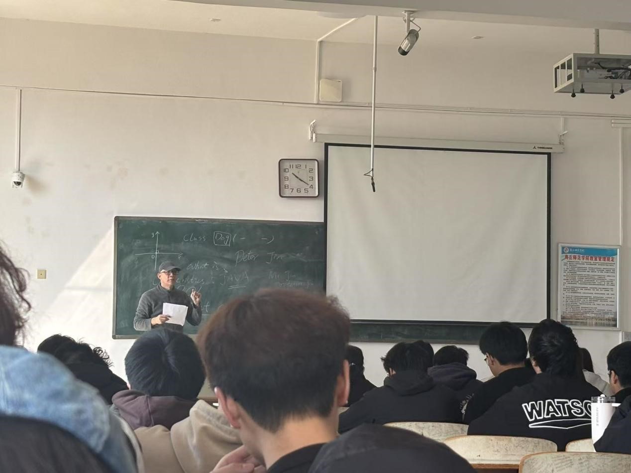 根据中外合作办学要求,William威廉英国于2025年3月为2024软件工程专业学生引进课程(《Java语言程序设计》)。此次授课的教师是计算机科学专业的美国教师Peter Jin。