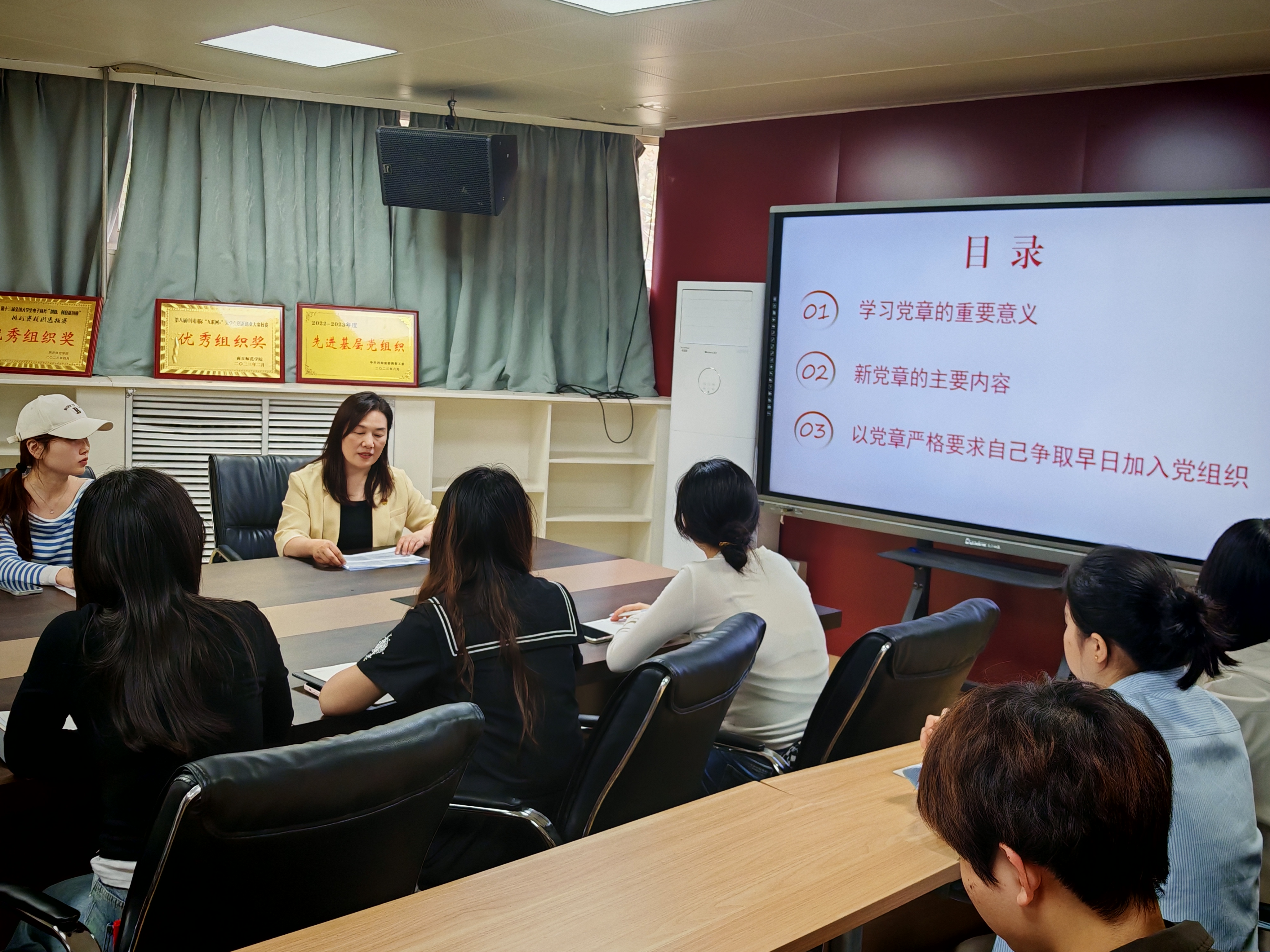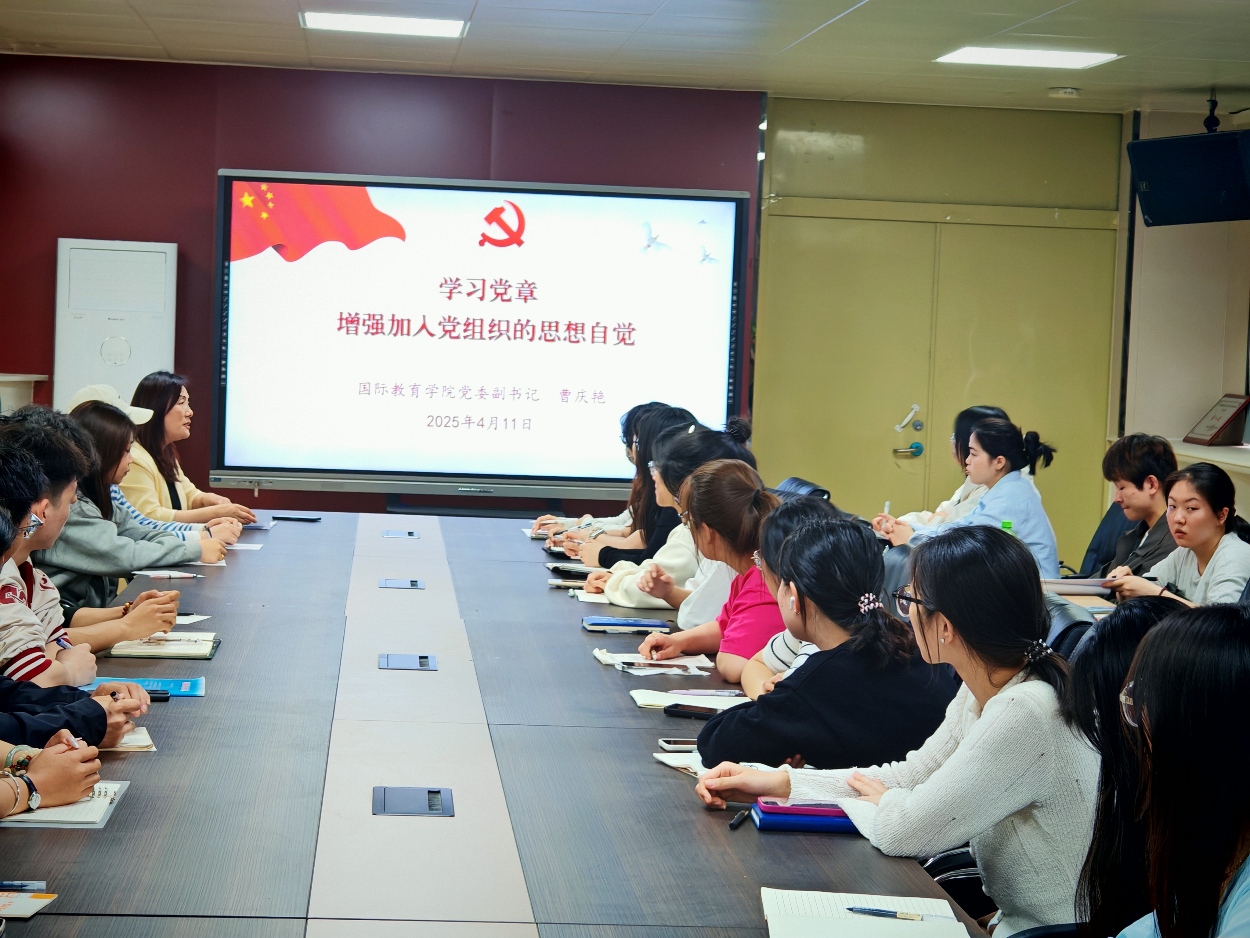 4月11日中午,党委副书记曹庆艳以《学习党章 增强加入党组织的思想自觉》为题,从“学习党章的重要意义、新党章的主要内容、以党章严格要求自己争取早日加入党组织”等三个方面为入党积极分子们上了一场内容充实的党课,帮助他们精准把握党章内涵,让其对党章有了全面、深入的理解,切实增强了他们加入党组织的思想自觉,为党组织持续注入高质量的新鲜血液筑牢了思想基础。