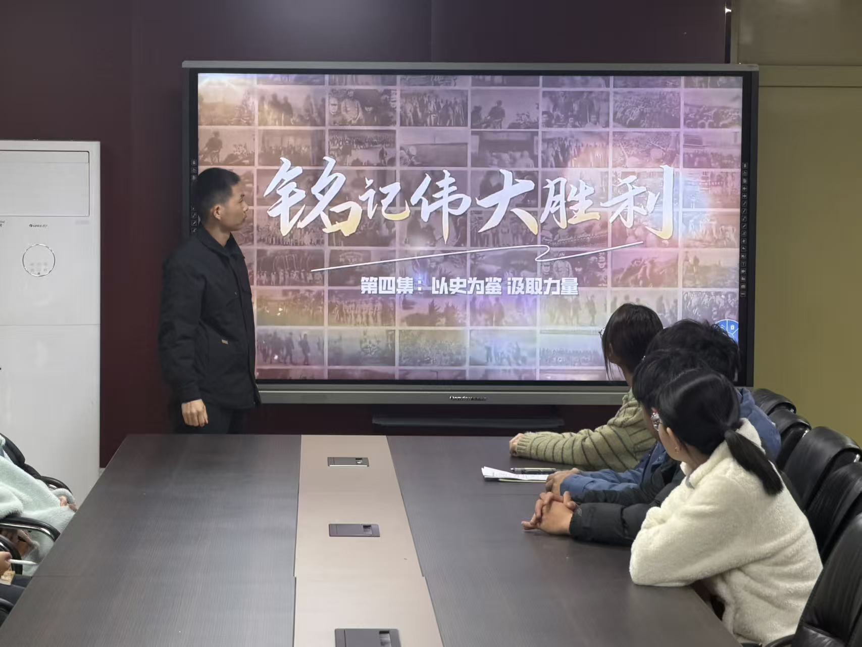 《铭记伟大胜利:以史为鉴汲取力量》以翔实的史料、生动的故事和深刻的解读,回顾了那段波澜壮阔的历史,展现了中国人民在艰难险阻面前不屈不挠、奋勇拼搏的伟大精神,深刻阐释了“以史为鉴、开创未来”的重大意义。观看过程中,党员们神情专注,被影片中展现的英雄事迹和崇高精神深深打动。