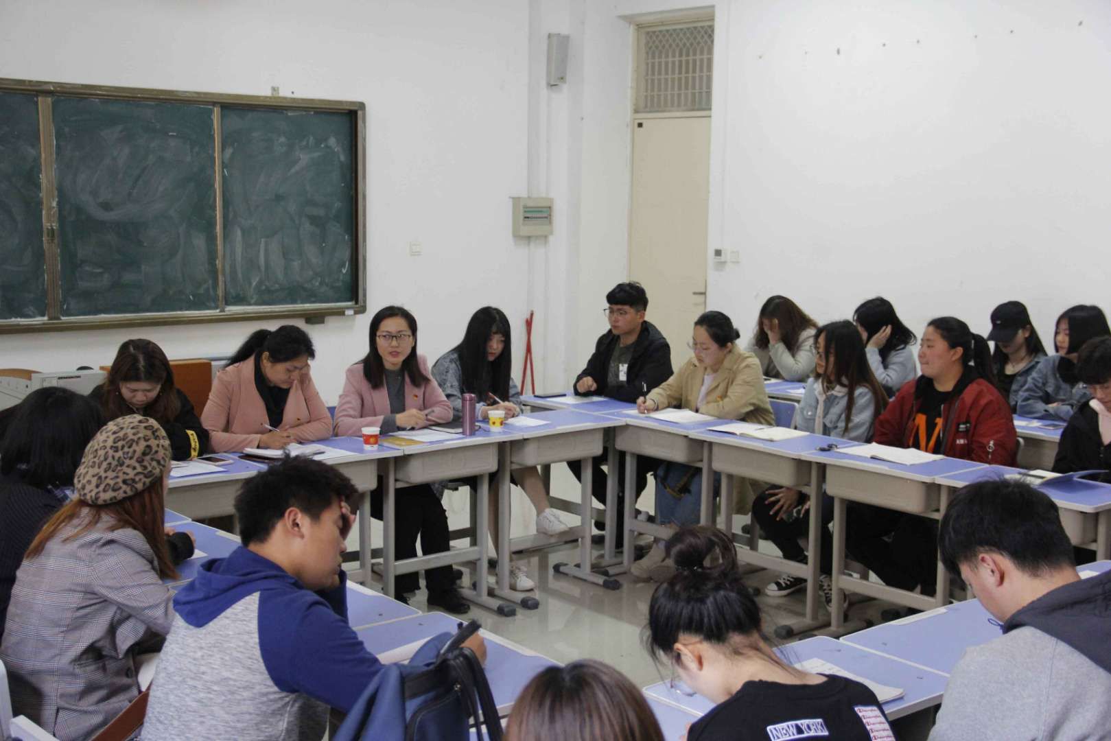 杨莹莹书记首先领学了党的十九大精神和习近平新时代中国特色社会主义思想,指出了现阶段团学工作存在的新情况、新动向、新任务,并对下一步团学工作进行了安排和部署。