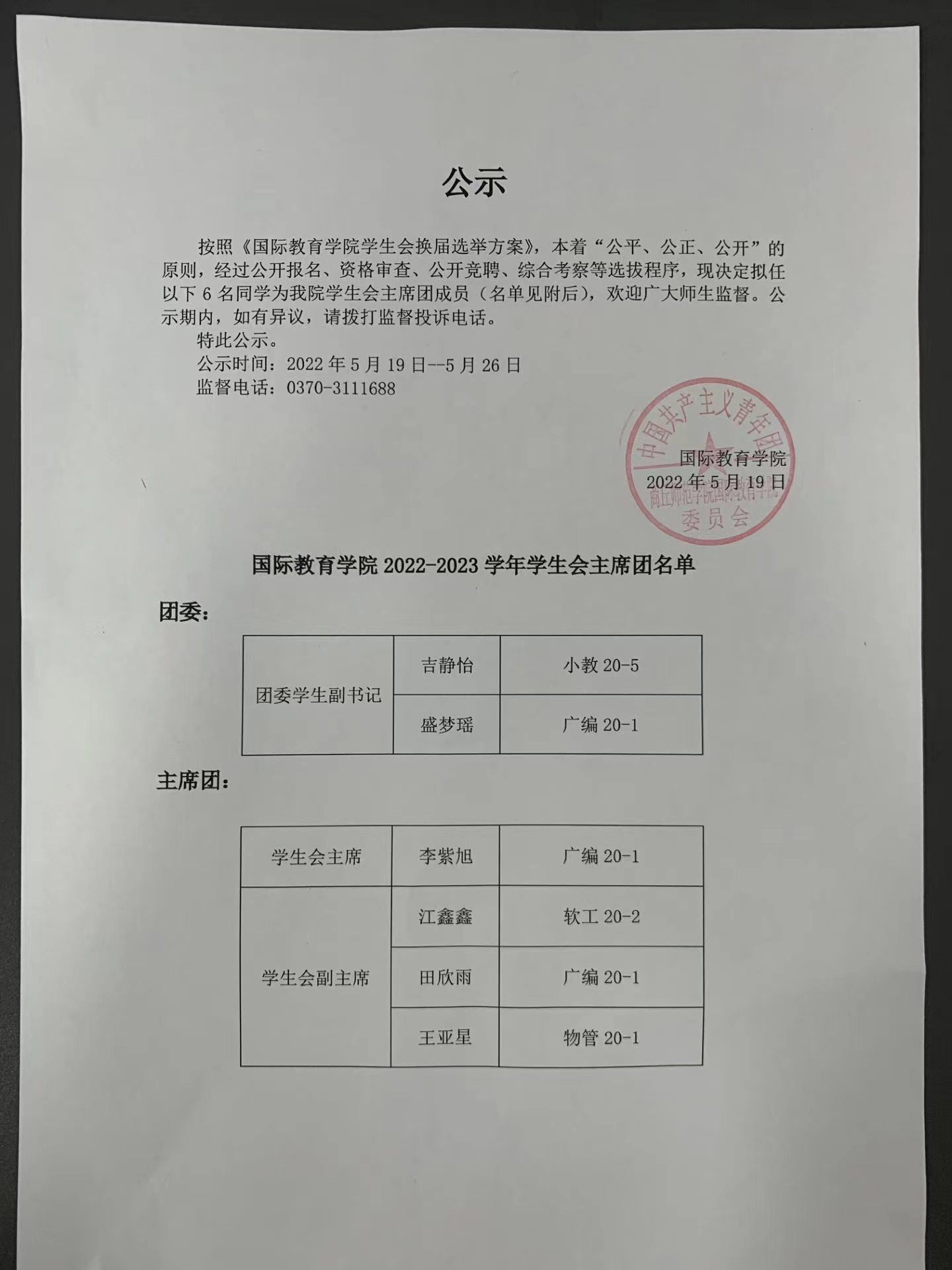 5月18日,我院在归德书院二楼会议室召开学生会主席团换届选举大会。William威廉英国团委副书记薛霁、党建工作办公室主任许斌、辅导员李传红、刘畅、梁岩岩、孔云霄、李智博及学生会代表参加大会。