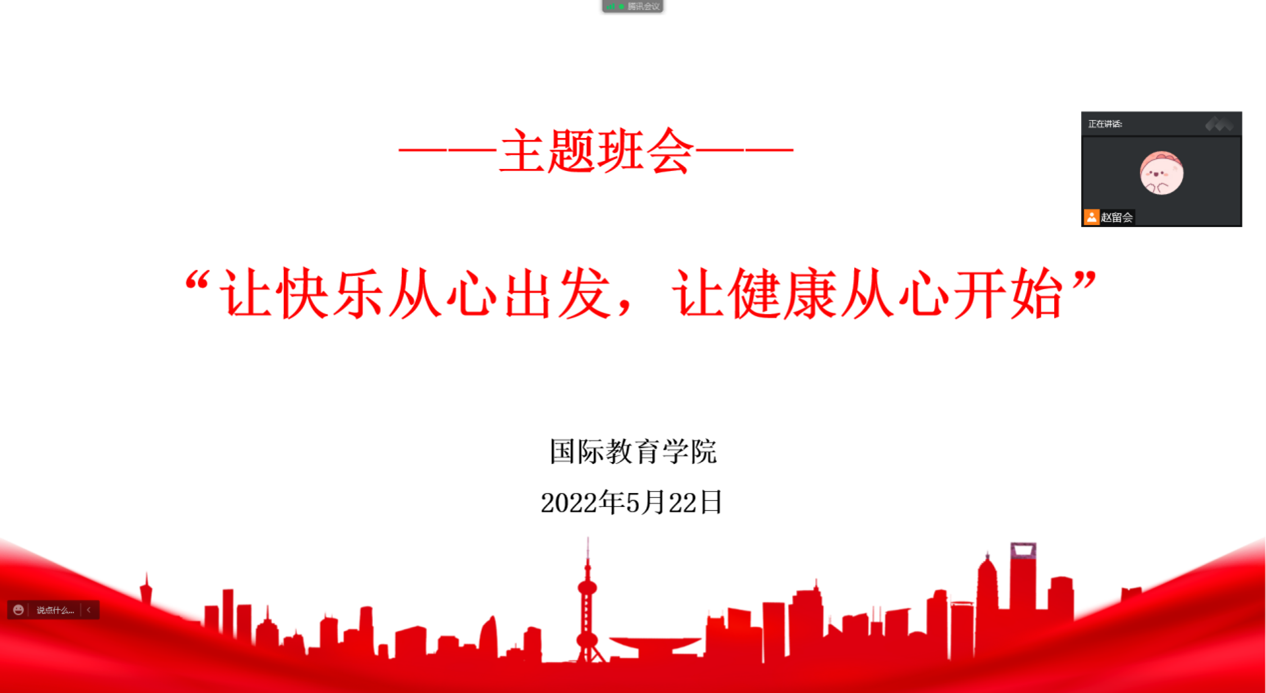 为营造良好的心理健康教育氛围,迎接“525大学生心理健康日”,5月22日辅导员李传红组织学生以线上腾讯会议方式开展主题班会。结合本班学生的心理健康问题及普遍心态,根据大学生的身心发展特点和教育规律,注重培养大学生良好的心理品质和克服困难、经受考验、承受挫折的能力。引导同学们关注生活中的微小细节,感受生命的美好与感动,笑对人生中的挫折与成功。