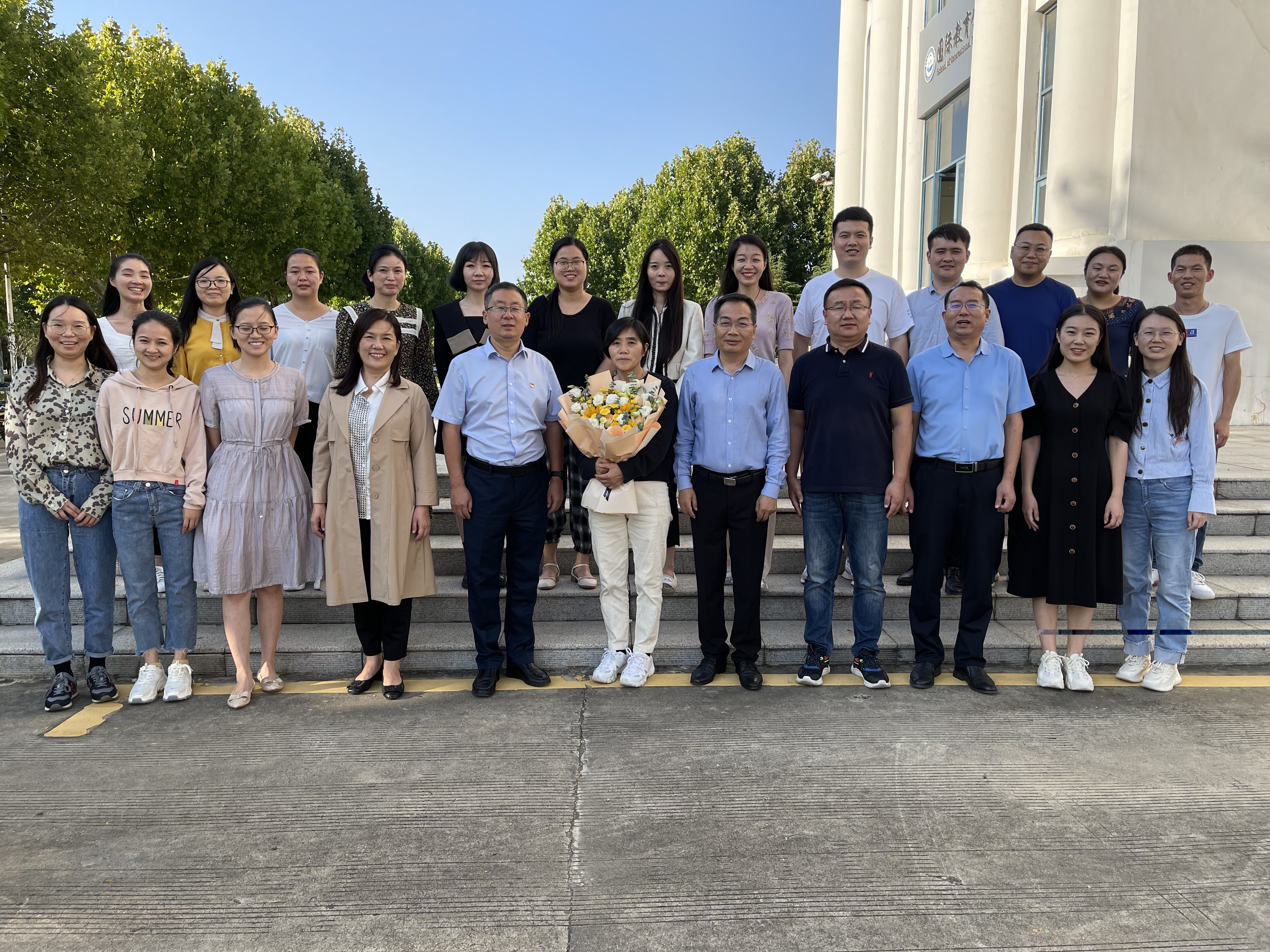 欢送会上,党委书记陈华代表学院对孙兰真多年来为学院的建设与发展所付出的辛勤劳动和贡献表示衷心感谢,他希望孙兰真老师能够“退而不休”,在合理安排好自己退休生活的同时,继续发挥余热,多为学校、学院的建设出谋献策。院长周运增表示,学院的发展离不开每一位国教人的努力和付出,孙老师多年来立职本职工作,坚守工作岗位,她强烈的责任心、真诚待人的态度和一丝不苟的工作作风,为大家留下了深刻印象,也希望年轻老师以她为榜样,努力工作,为学院发展贡献应有力量。随后,孙兰真畅谈了自己的工作经历与感想,言语中无一不透露着对学院的依依不舍之情,并表示即使自己退休了,也仍然会一如既往地关心关注支持学院发展,“常回家看看”。最后,全体教职工合影留念,大家纷纷向孙老师送上祝福,祝福孙老师幸福安康、岁岁不老、永葆青春。