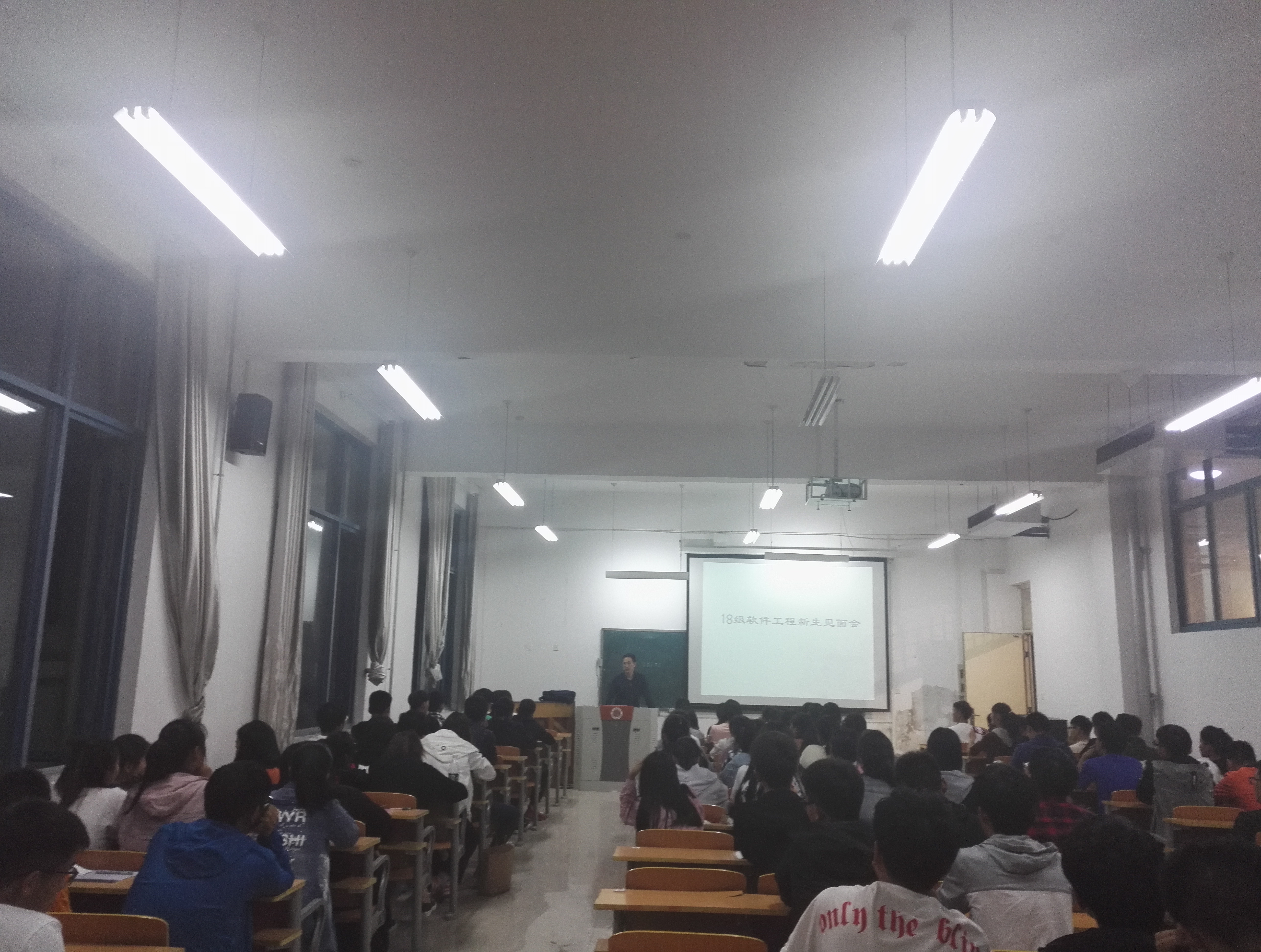 朱主任又用“不要多看书”、“遇到问题不要张口就问”、“学会囫囵吞枣”等观点刷新了同学们对专业学习的认知。他深入介绍了学科内容与就业方向。其中“关于学习”部分给一些还在迷茫中的新生指明了方向。一个 “编程=理论+实践+耐心+毅力”的公式让大家赞叹不已。而后,从德国留学归来的郑老师为同学们讲述了国外多彩的校园生活和一些轶事趣闻,引起了学生对未来大学生活的美好期待。