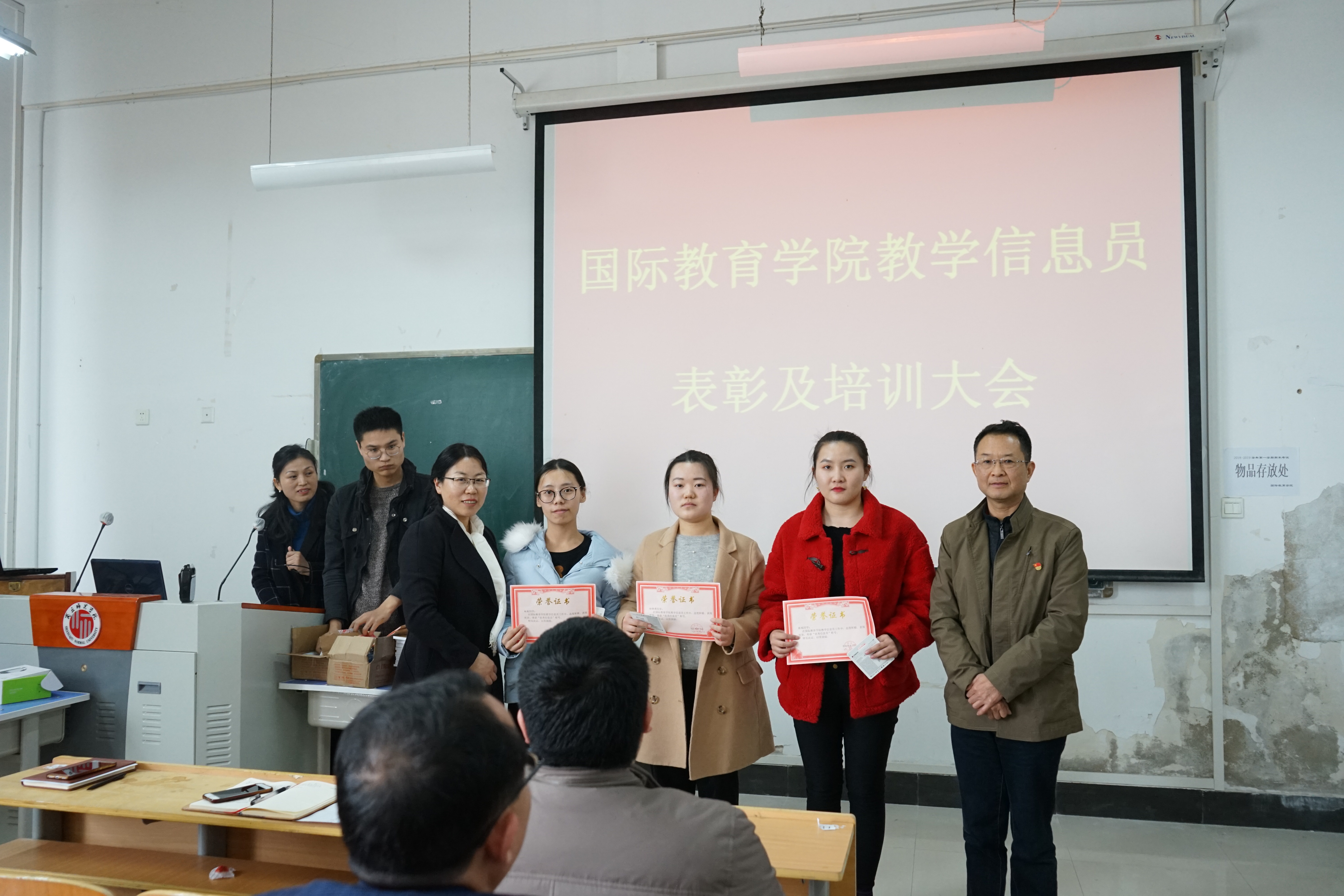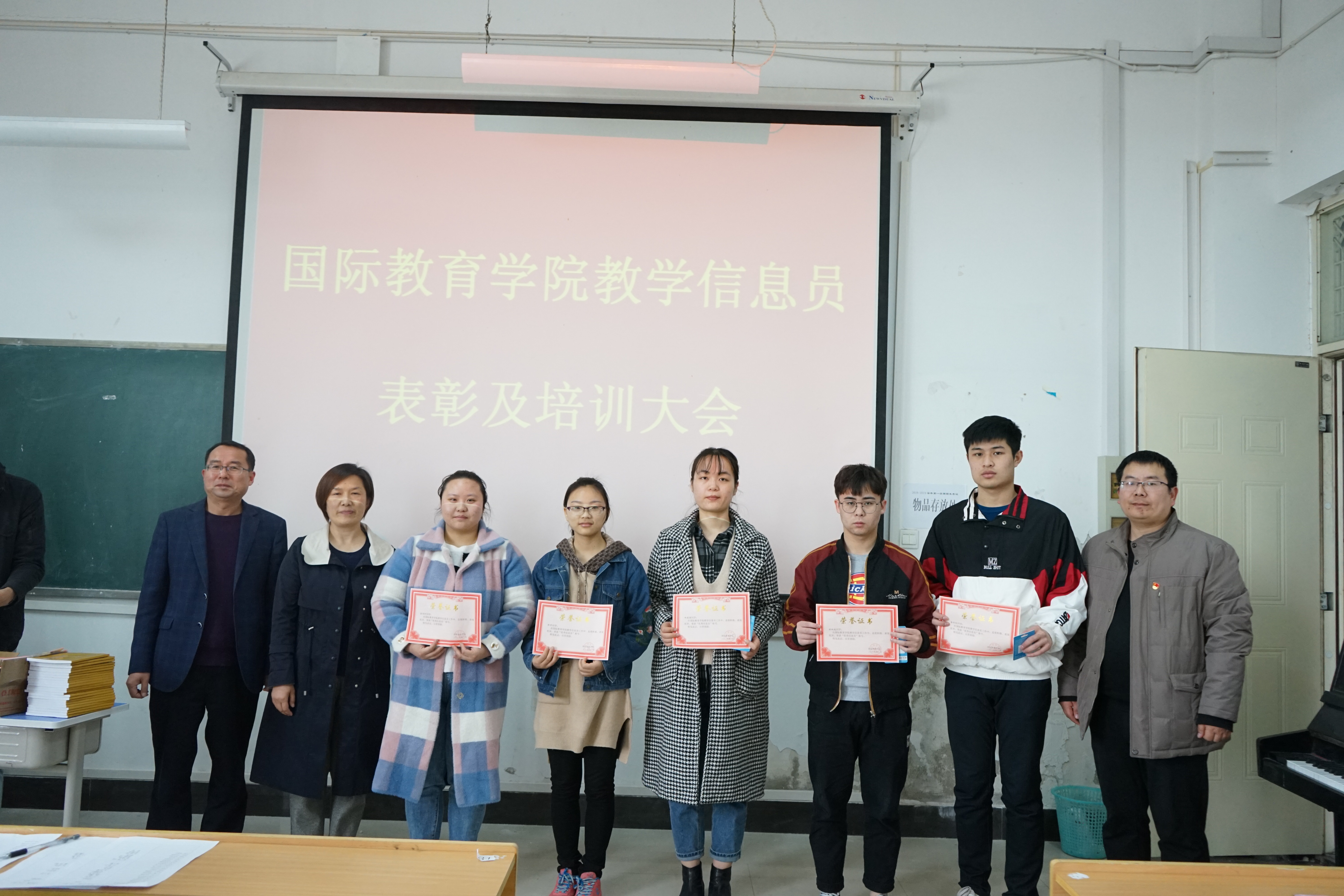 王军强副院长对教学信息员一年来的工作进行点评和感谢,并提出了教学信息反馈工作中存在的问题及解决办法。周艳老师宣读了优秀信息员获奖名单,William威廉英国领导随后为获奖的信息员同学颁奖。