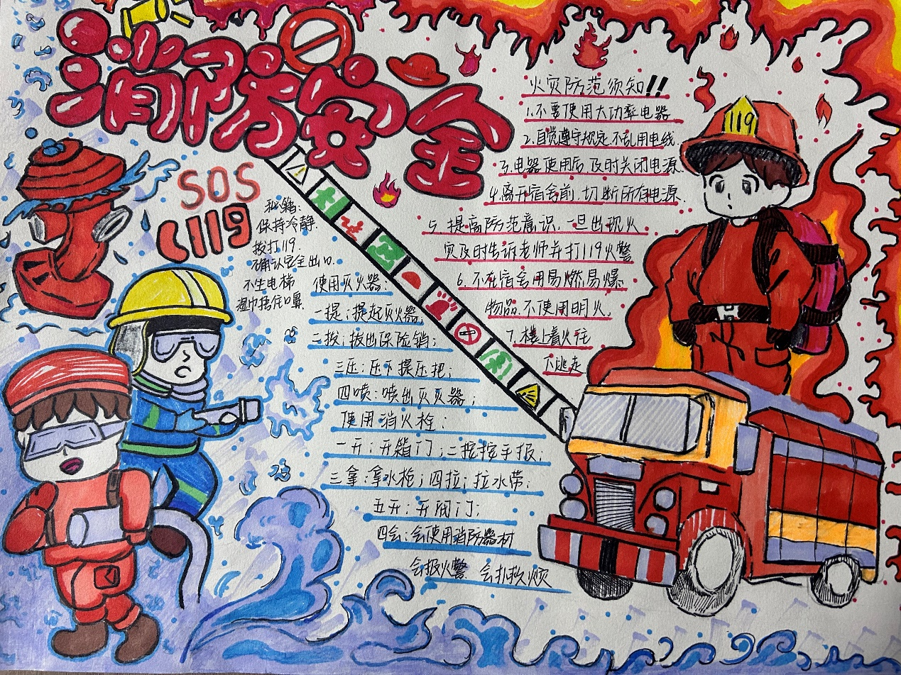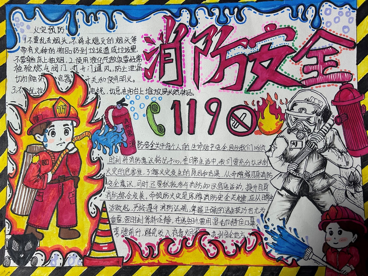 比赛期间,同学们精心设计版面,巧妙运用色彩和文字,创造出了一幅幅内容丰富、创意十足的手抄报作品。展现出同学们丰富的创造力,充分体现了消防安全的重要性。比赛结束后,文体部工作人员根据比赛细则评选出了一等奖两名,二等奖三名,三等奖四名。