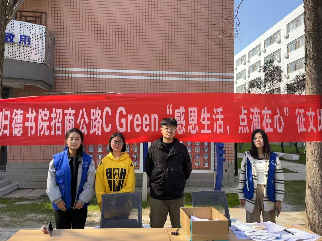 为培养学生感恩意识,发现生活中的美好与温暖,归德书院学生权益中心于11月8日在归德文化广场举办了招商公路“C Green”杯“感恩生活,点滴在心”征文比赛。