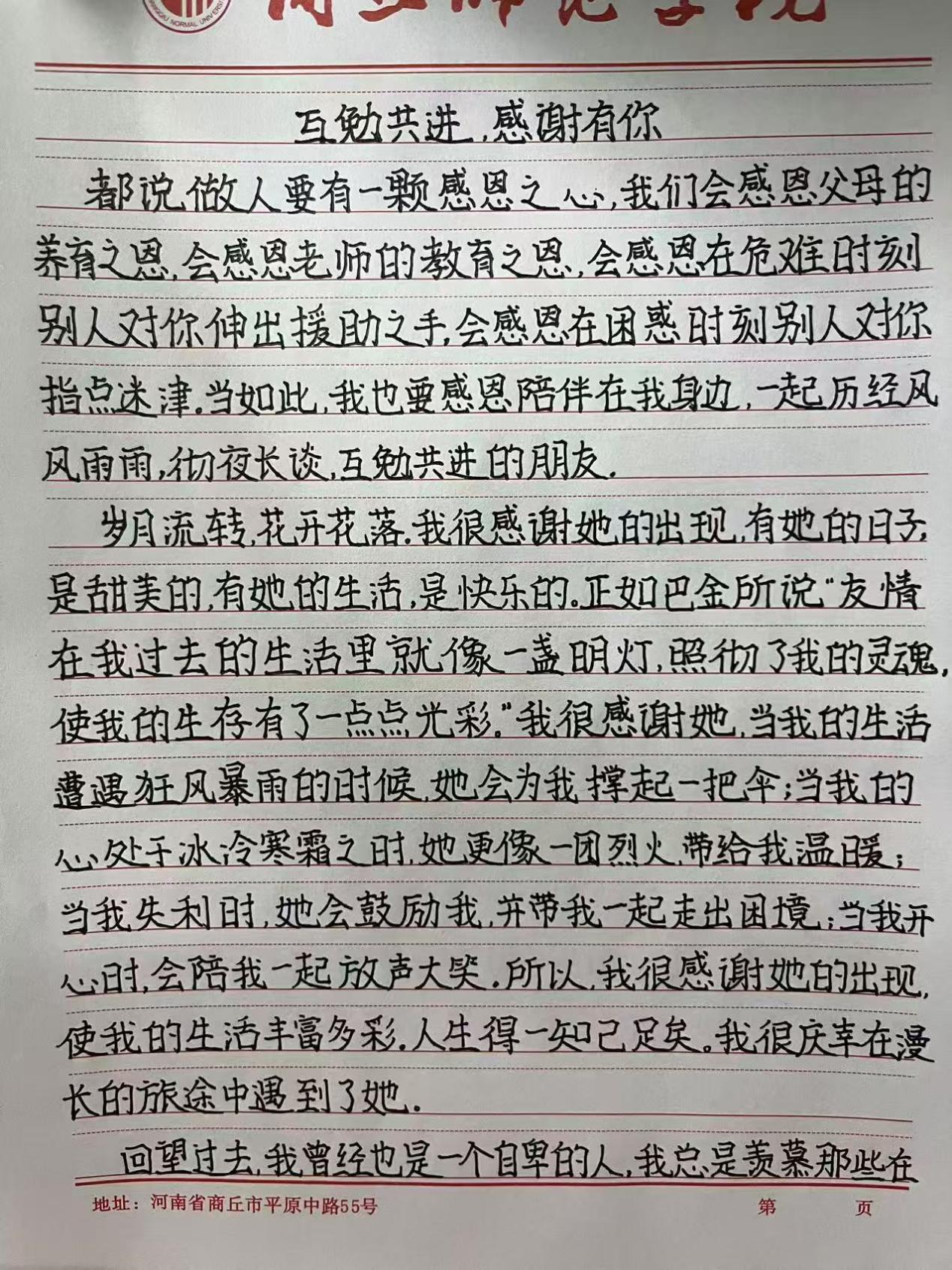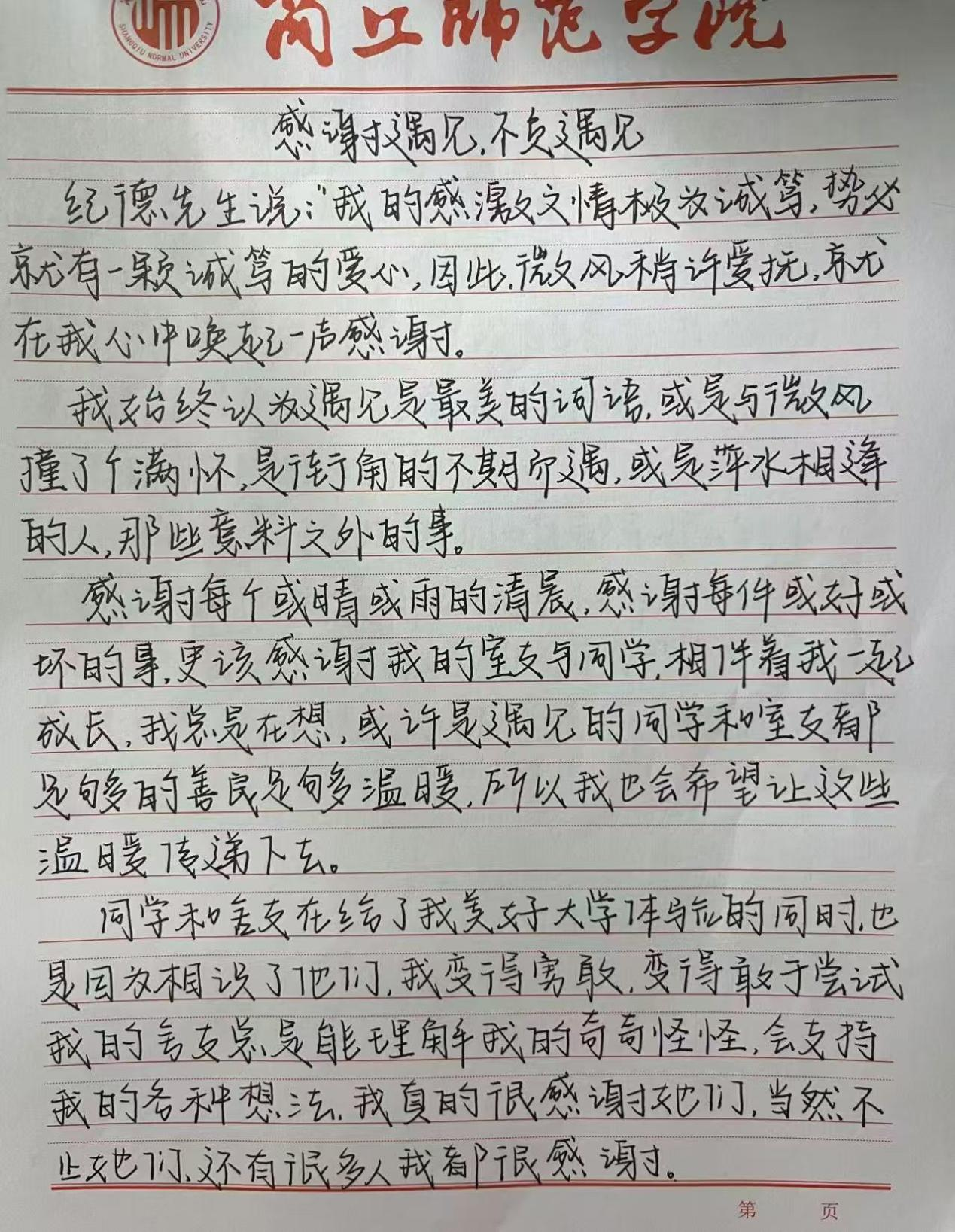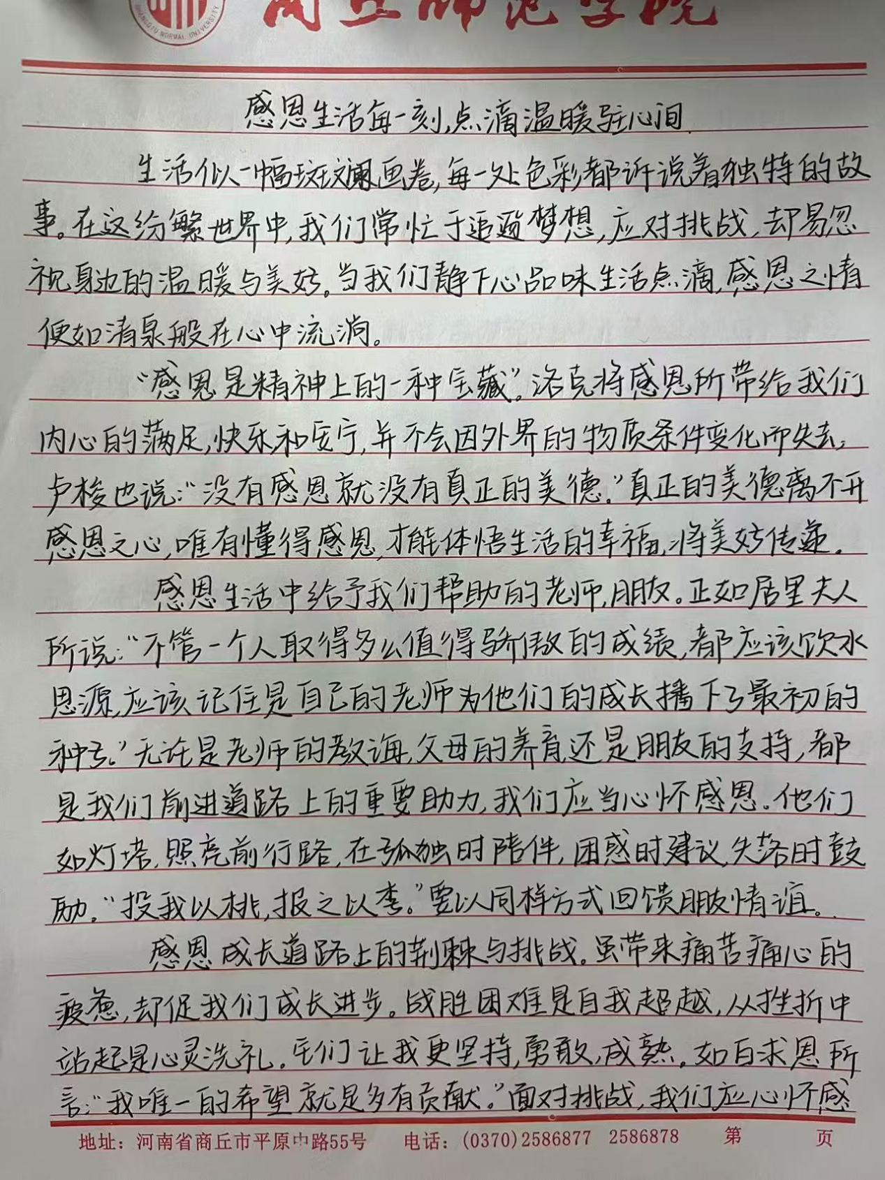通过此次比赛,为同学们提供了一个展示文学才华的平台,有利于同学们以更加积极向上的心态面对生活,传递温暖与正能量,在书院内营造浓厚的感恩氛围。