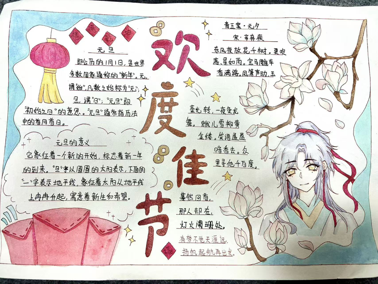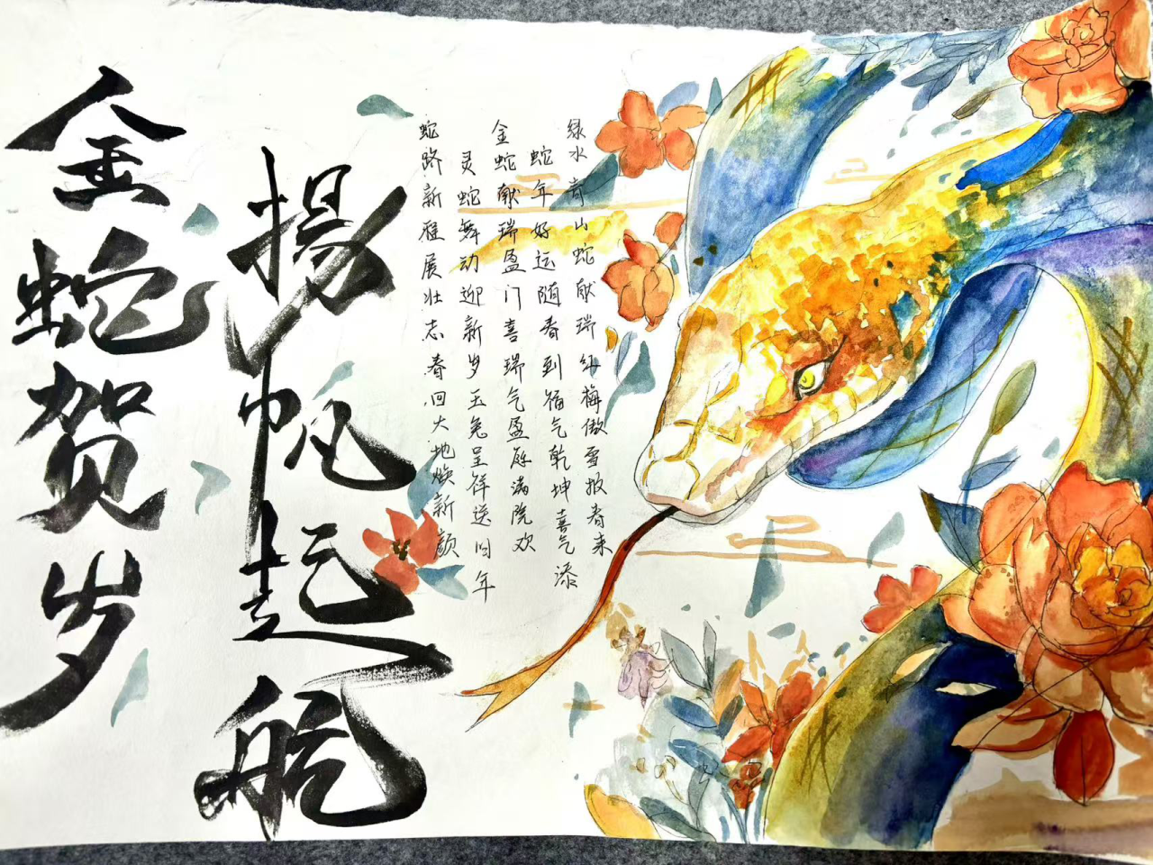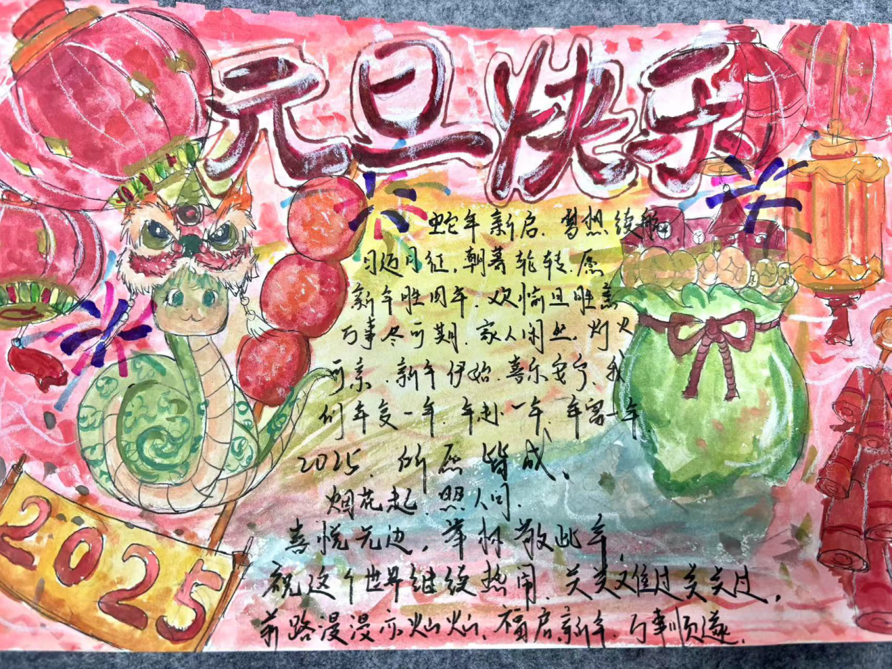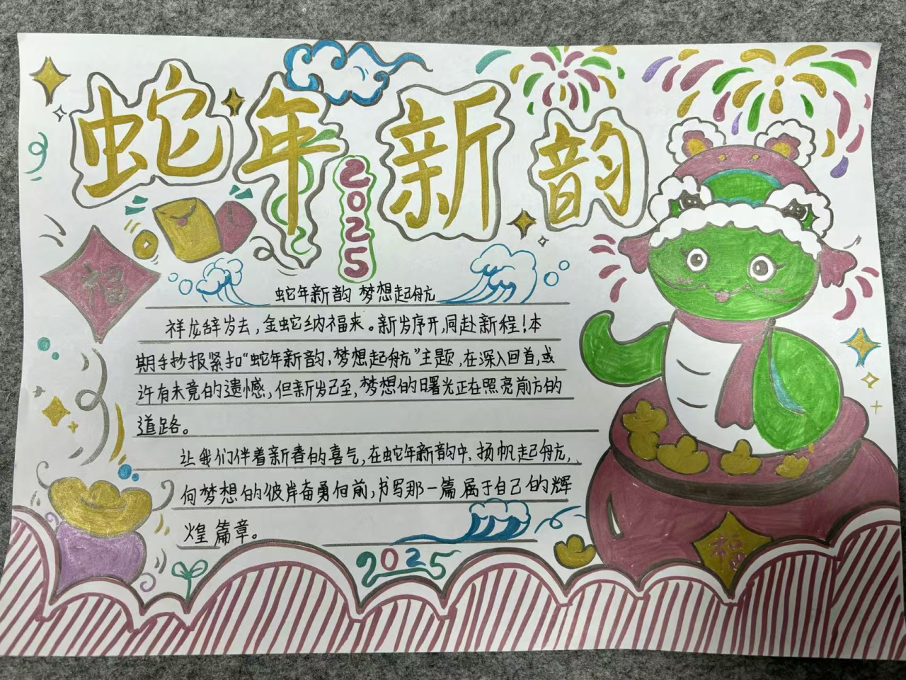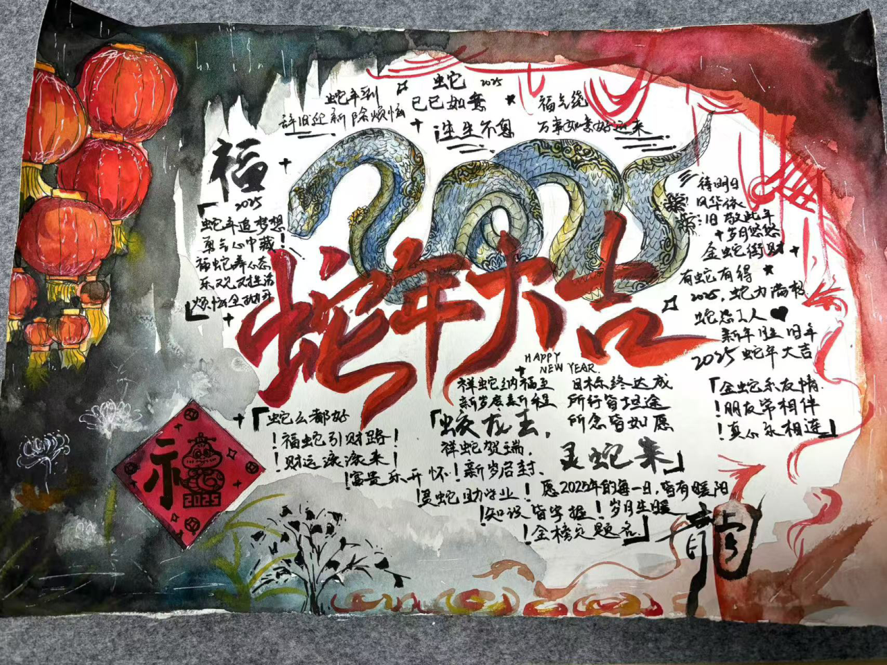 活动期间,同学们依据个人喜好确定手抄报的内容,运用图文并茂的形式,融合文化和艺术元素制作出独特的手抄报作品,作品承载着同学们对新年的期许与庆祝,也展现了同学们的动手能力、审美能力和创新能力。活动结束后,手绘社工作人员根据比赛细则评选出了一等奖二名,二等奖三名,三等奖四名。