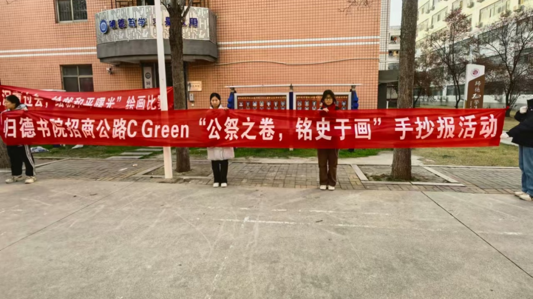 为让学生们深入探究历史真相,将历史的厚重与艺术的感染力融合,归德书院学生会新媒体中心部于12月13日在归德书院文化广场举办招商公路“C Green”杯“公祭之卷,铭史于画”手抄报比赛。