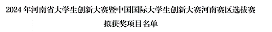 8月28日,河南省教育厅官网公布2024年河南省大学生创新大赛暨中国国际大学生创新大赛河南赛区选拔赛拟获奖项目名单,我院师生喜获省赛三等奖2项。