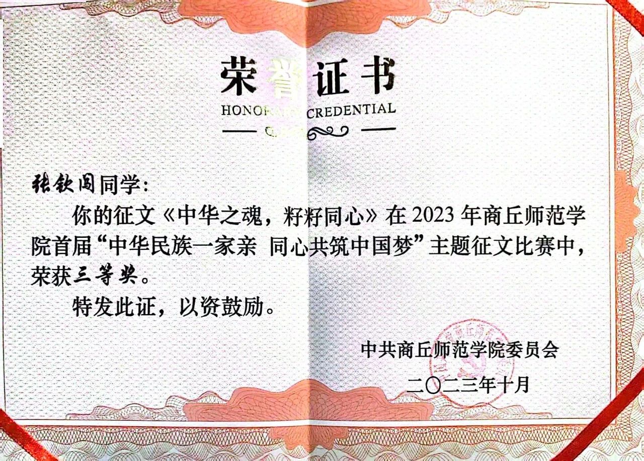 我是来自归德书院2021级广播电视编导专业的张钦闯,非常荣幸获得招商公路“C Green”公益助教计划优秀学生奖学金,这对我来说是一种巨大的鼓励和鞭策,在此,我要感谢学校和老师对我的认可和支持。