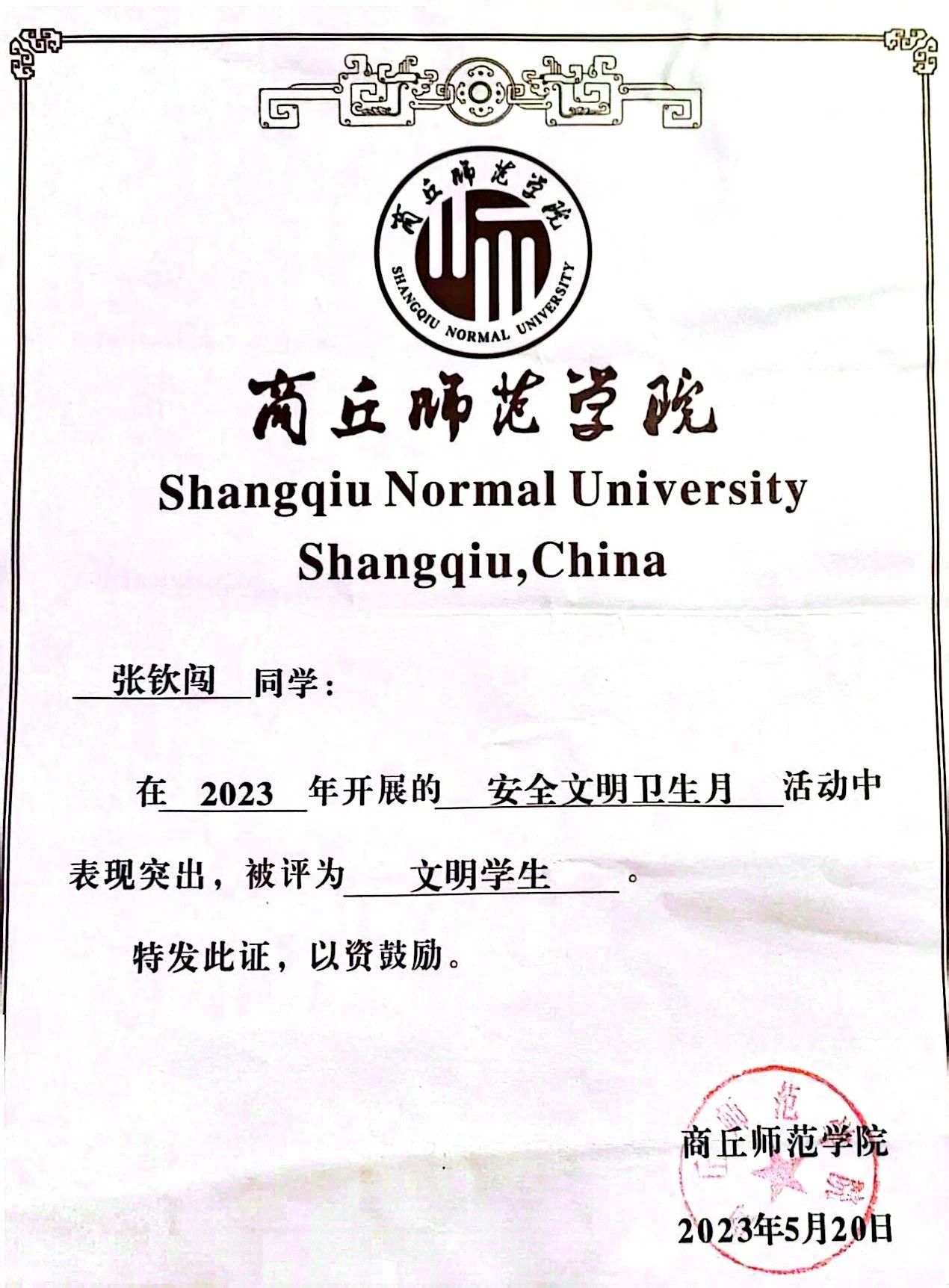 姓名:张钦闯