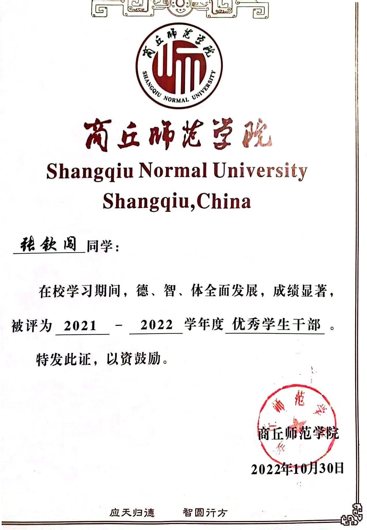 社团职位:归德书院团委学生会主席