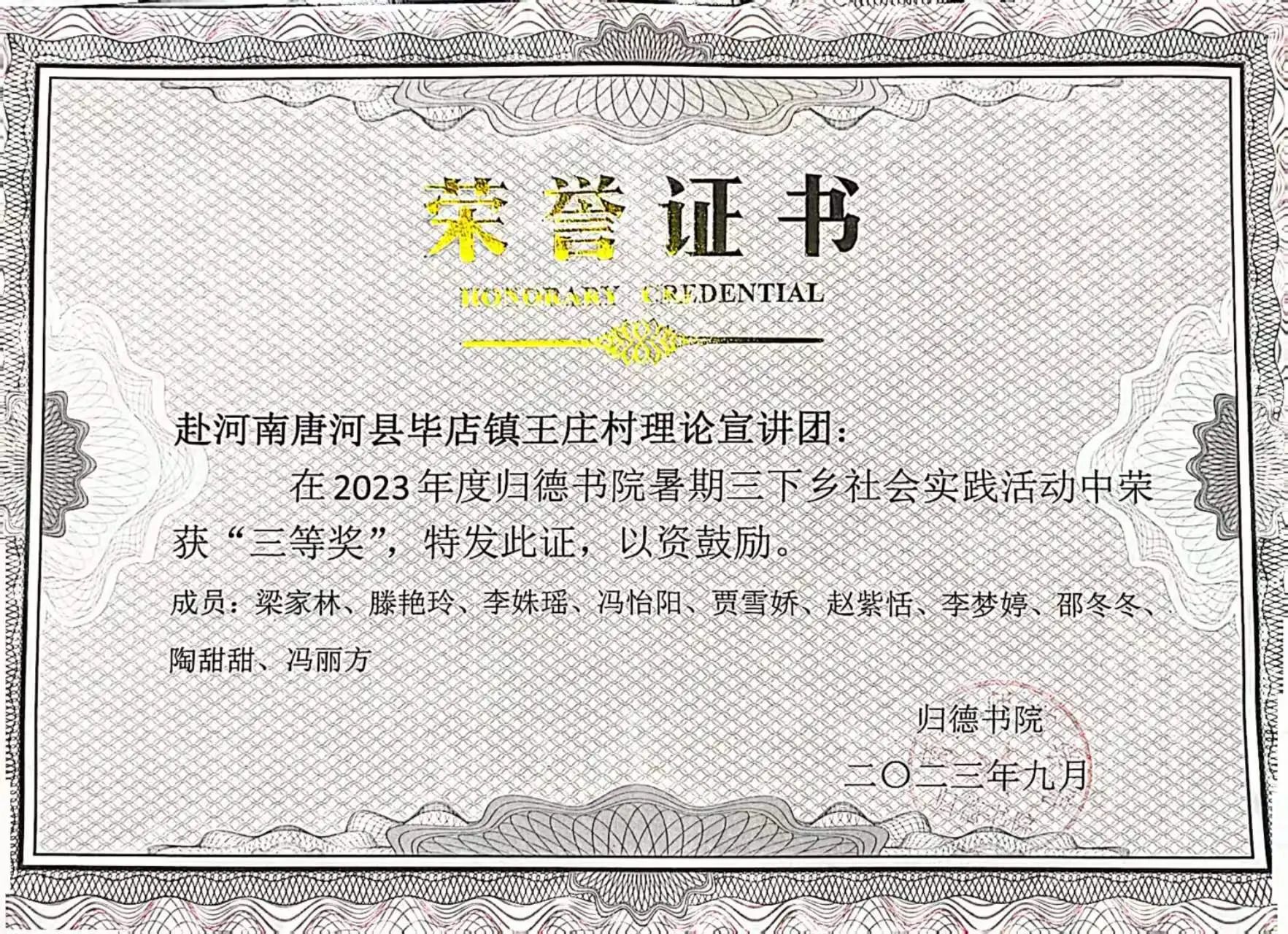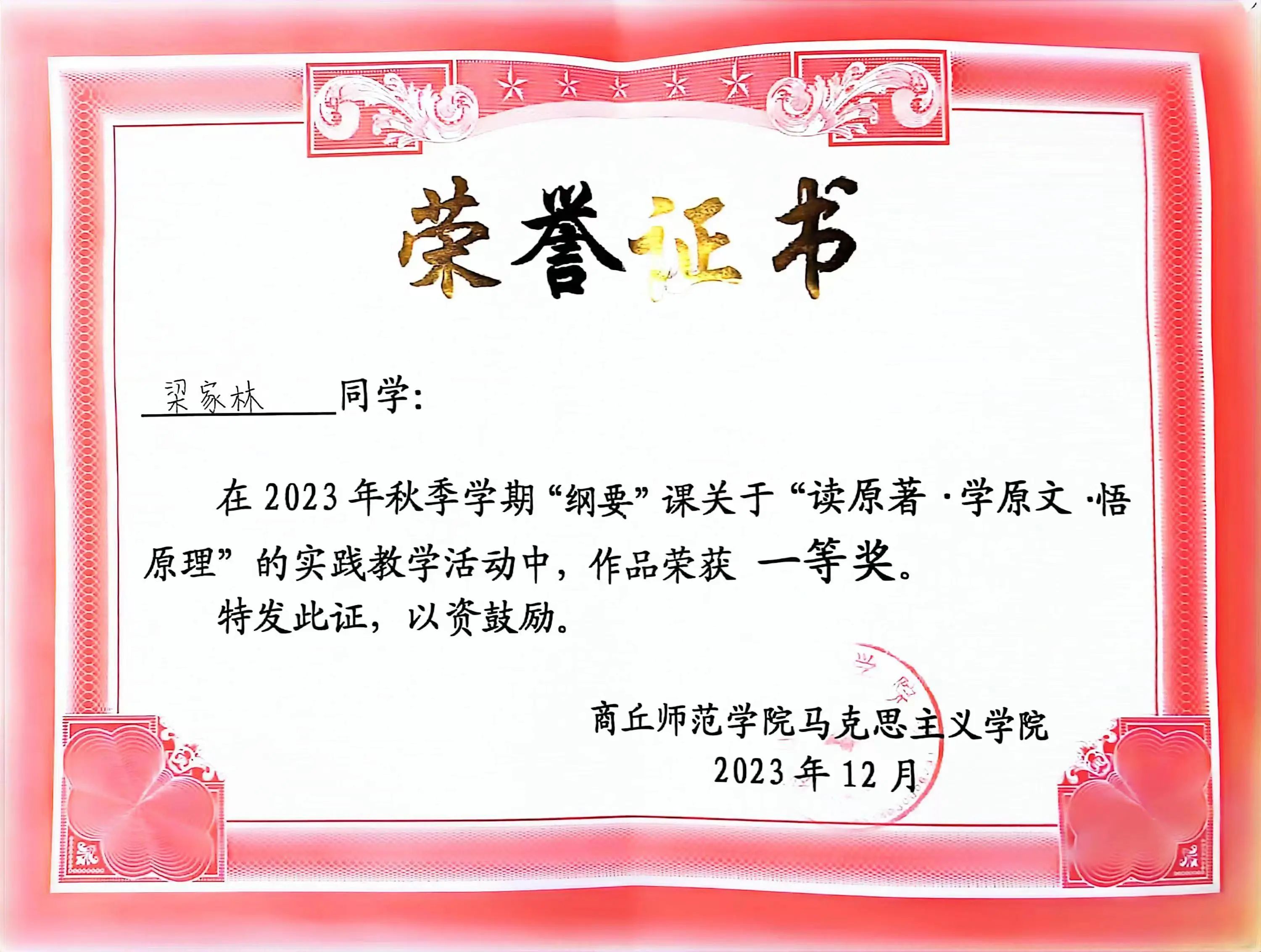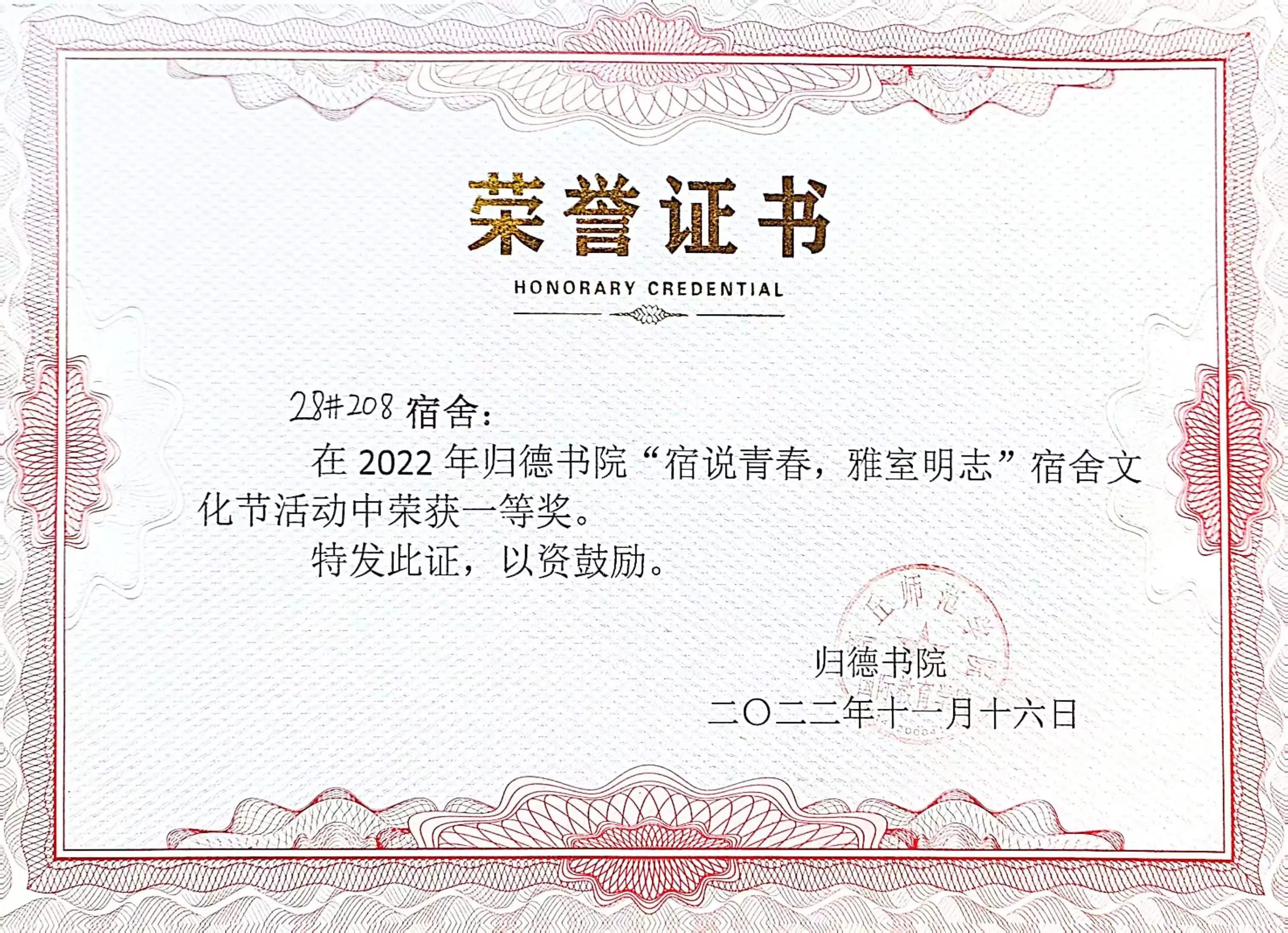 个人荣誉证书: